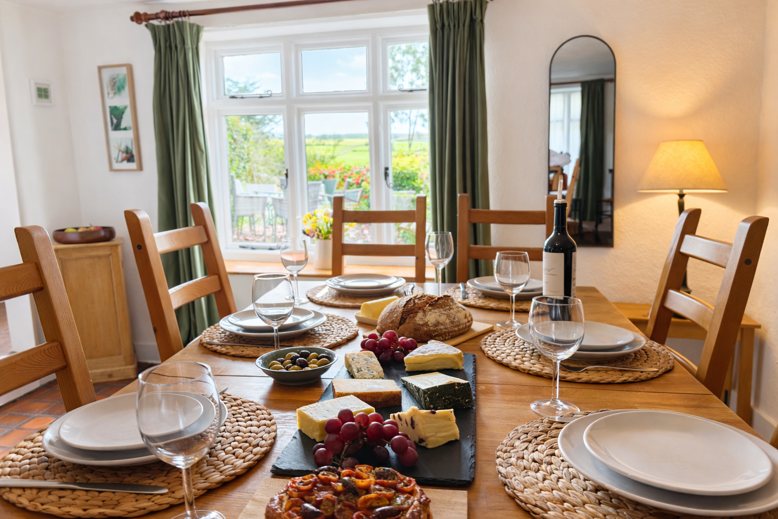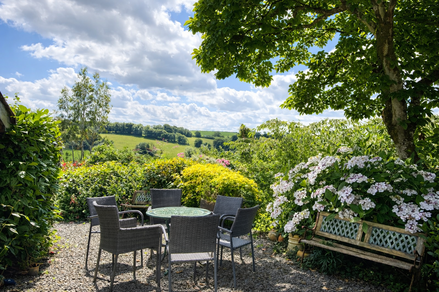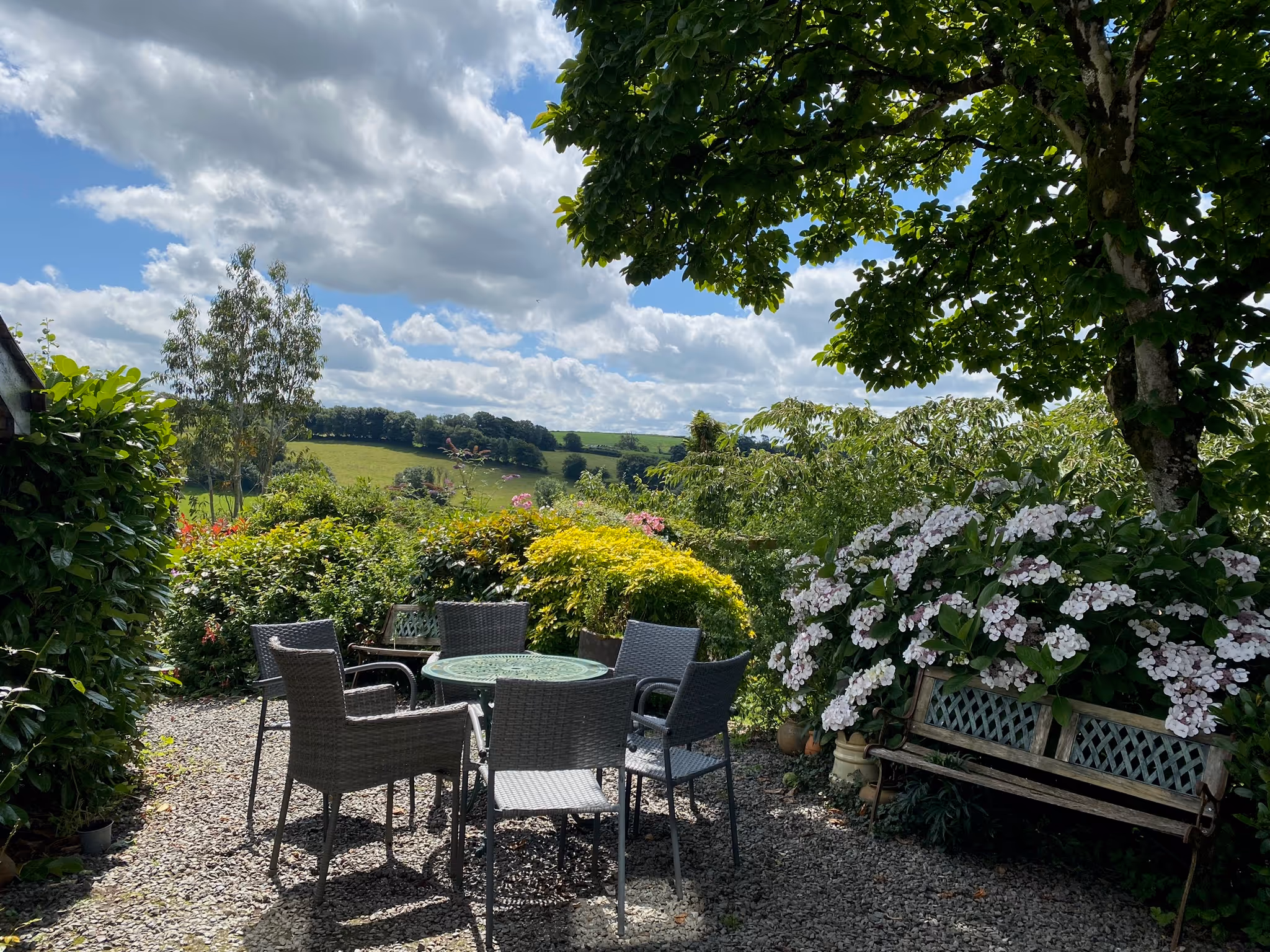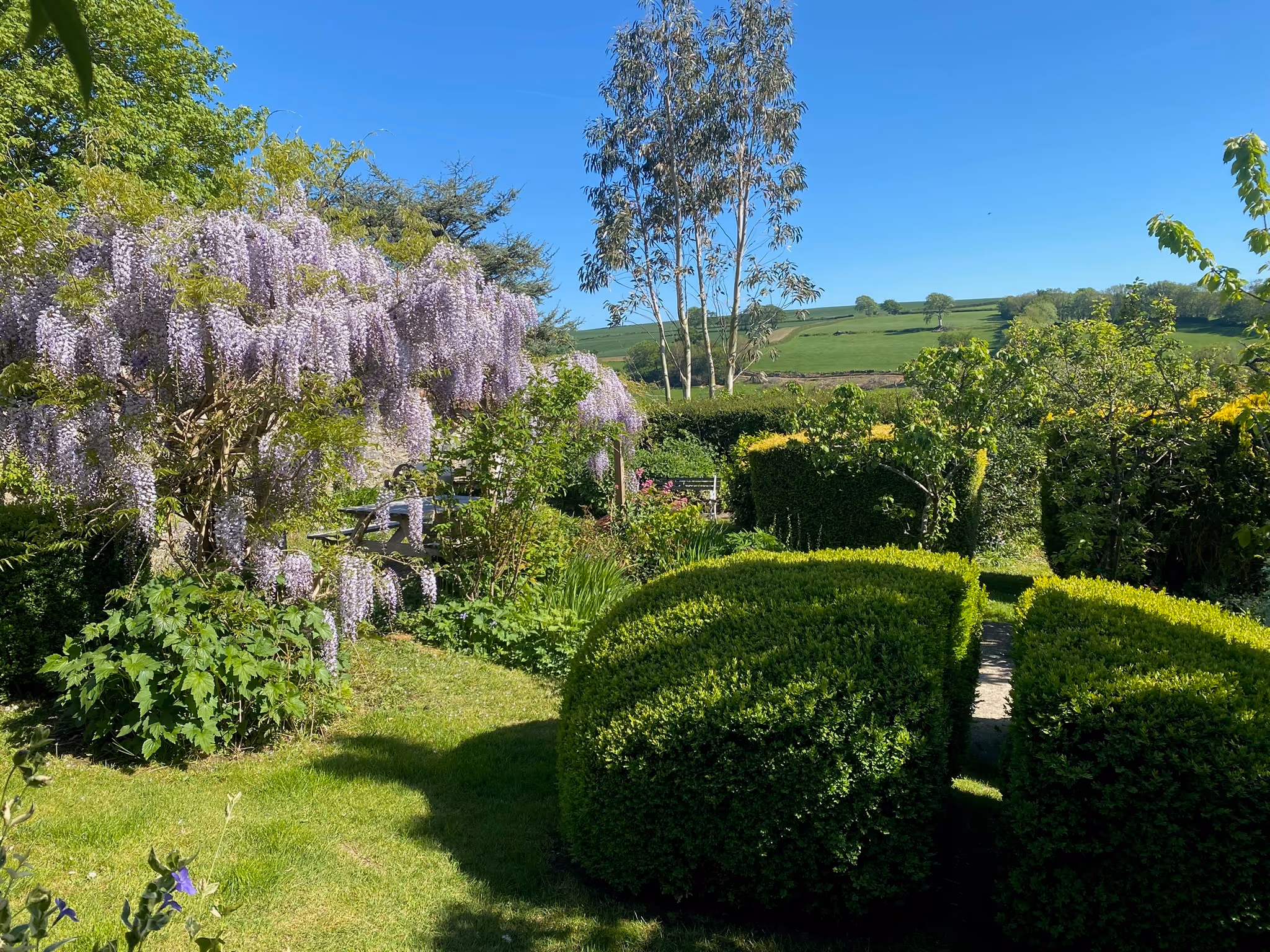 The beautiful garden at Magnolia View Cottage can be accessed from the main hallway and the kitchen and has something to offer to all guests. The walled garden begins with the upper terrace with stunning views and table and chairs to relax and enjoy the surroundings. A pretty path, along the historic stone wall, leads to a lower seating area featuring a picnic table for alfresco dining and a BBQ, from here you can sit back and relax surrounded by flowers and enjoy some of the gorgeous countryside views. The private, fully enclosed garden also has a level lawn area and fruit trees. Of course the highlight of the garden is the magnificent ancient magnolia tree that sits centrally within the garden.